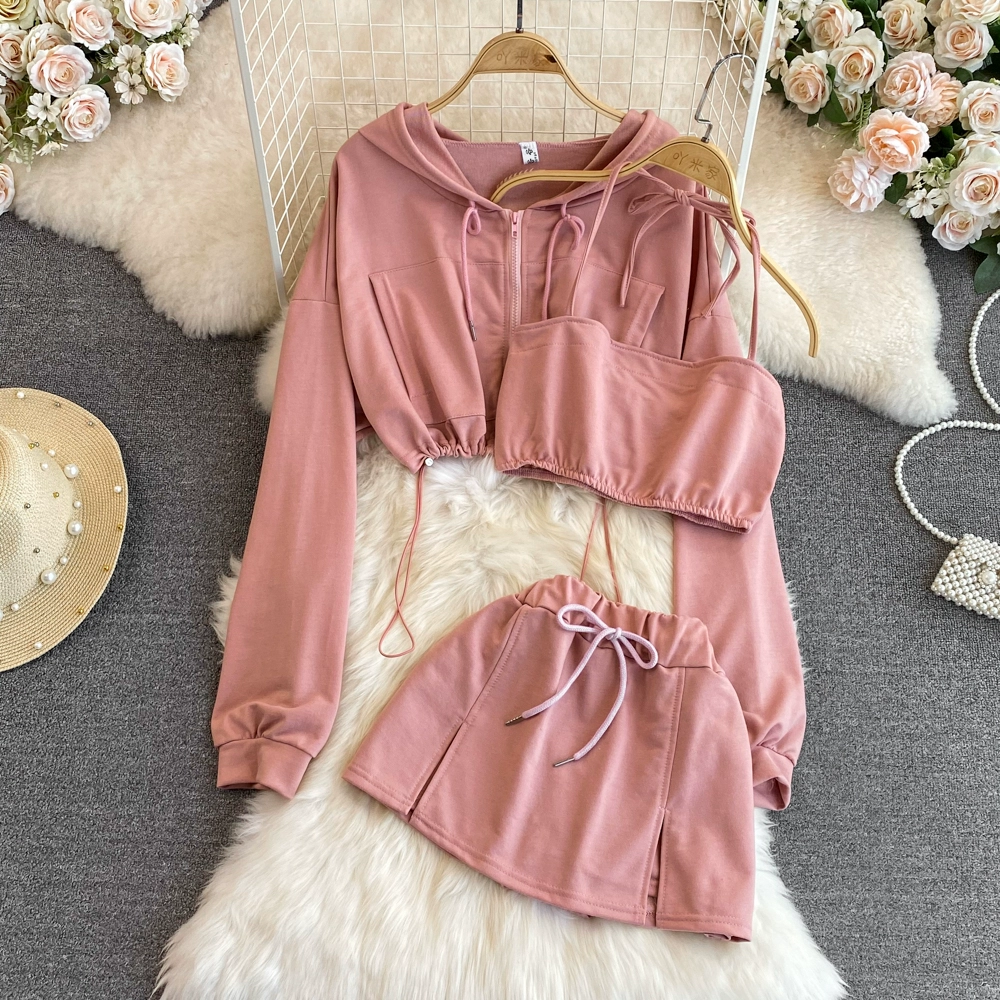 Zippered hooded halter neck slit skirt fashion suit
