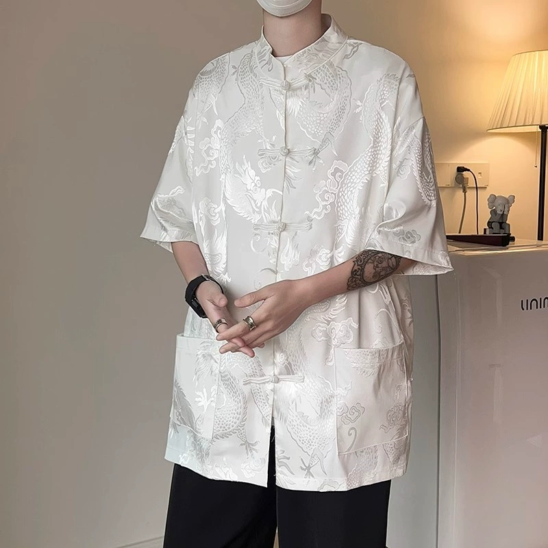 Dragon pattern extra large size Chinese style short sleeve men’s Tang suit