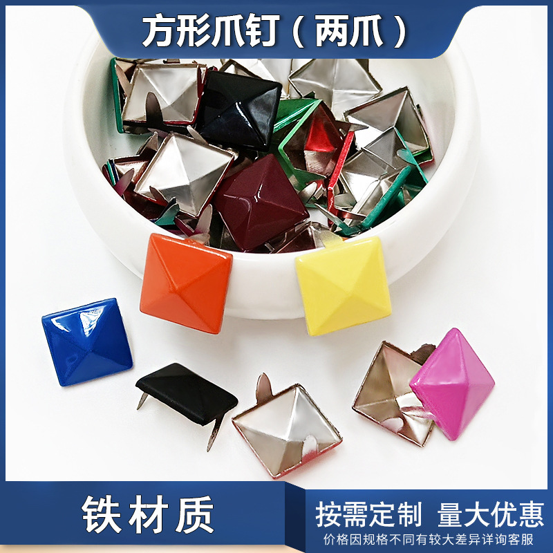 Colorful Iron Square rivet pyramid square claw buckle DIY clothing shoes bag accessories metal spray paint two claw square beads
