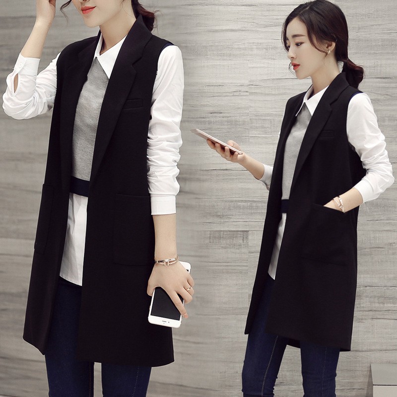 2023 Autumn New Korean Style Sleeveless Slim Look Vest Vest Vest Spring and Autumn Suit Jacket Mid-length Vest for Women