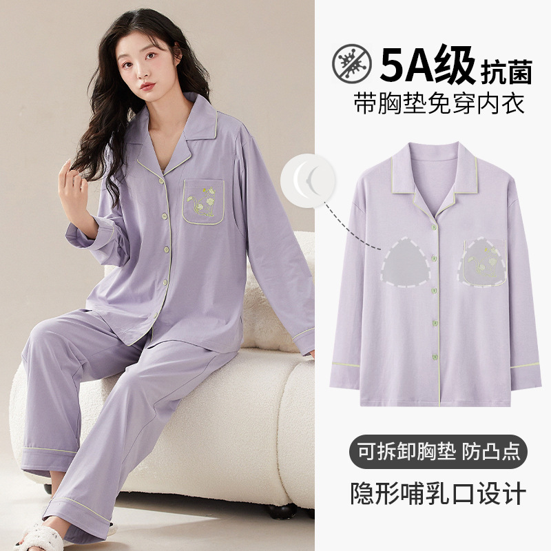 Spring and Autumn Pure Cotton Postpartum Pregnant Women’s Pajamas with Chest Pad Women’s Summer Thin Maternal Breastfeeding Clothes Feeding Set