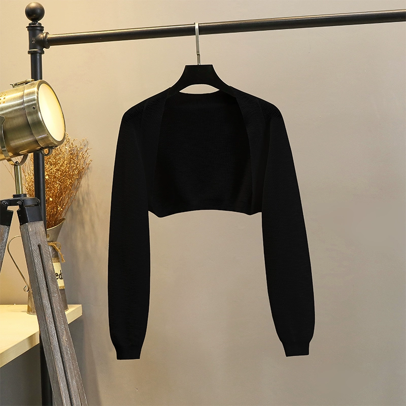 Ice silk thin skirt high waist knitted cardigan small waistcoat