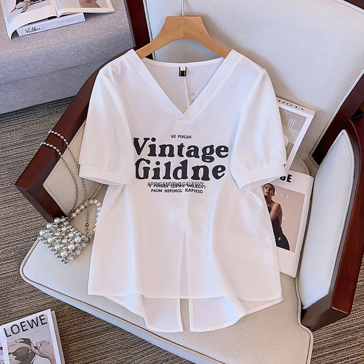Women’s Large Size Women’s Back Split Short Sleeve T-Shirt Women’s Summer 2023 New Korean Style Loose Slim-fit V-neck Top for Women