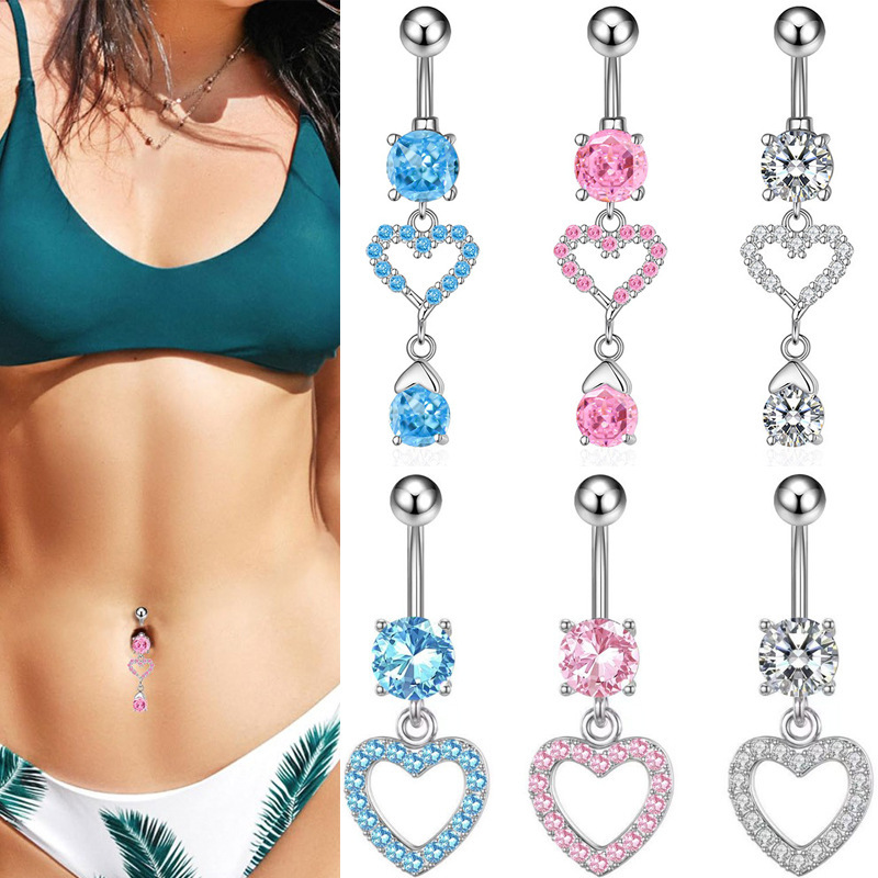 Fashion New Jewelry Peach Heart Micro-inlaid Navel Ring G23 Titanium Rod Hot Selling Zircon Pendant Navel Nail Piercing Navel Buckle