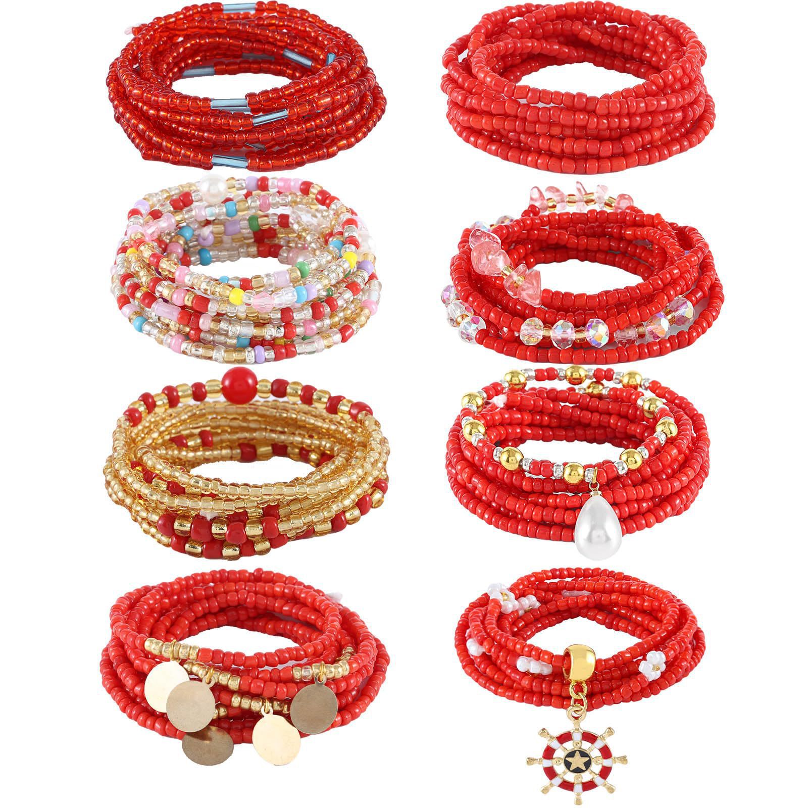 European and American Cross-border Jewelry Simple Single Layer Handmade Beaded Body Chain All-match Contrast Beige Bead Elastic Waist Chain for Women