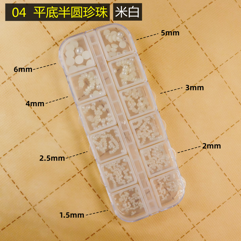 Nail art pearls without holes, full round flat bottom semi-circle pure white size mixed three-dimensional non-skinned mini small steel bead jewelry
