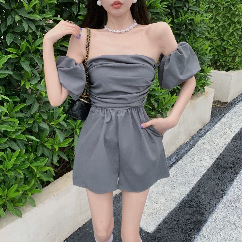 Bubble sleeve, shoulder, shoulder, wide legs, summer French tube top