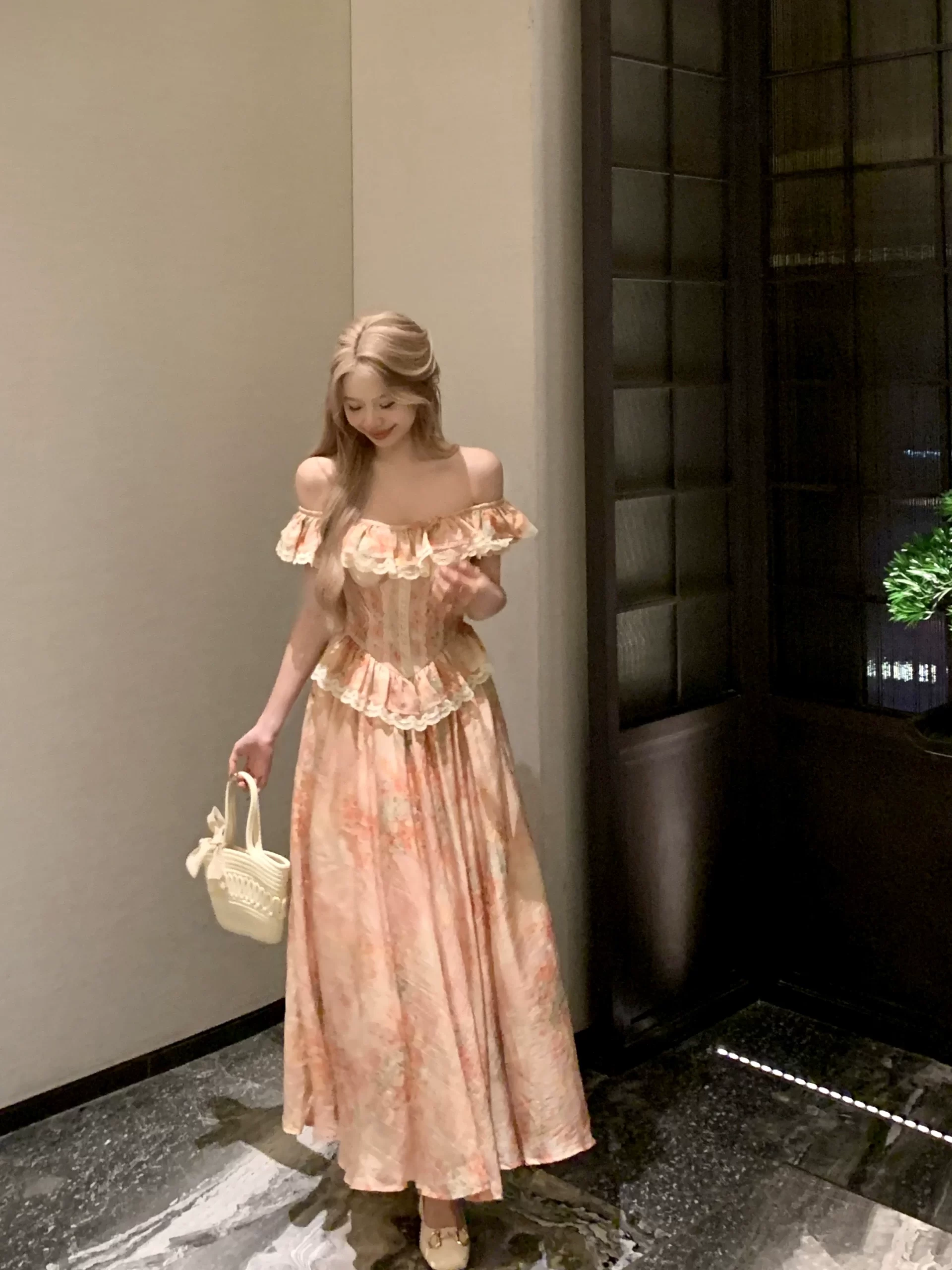 Off-the-shoulder French summer gentle and beautiful short-sleeved dress