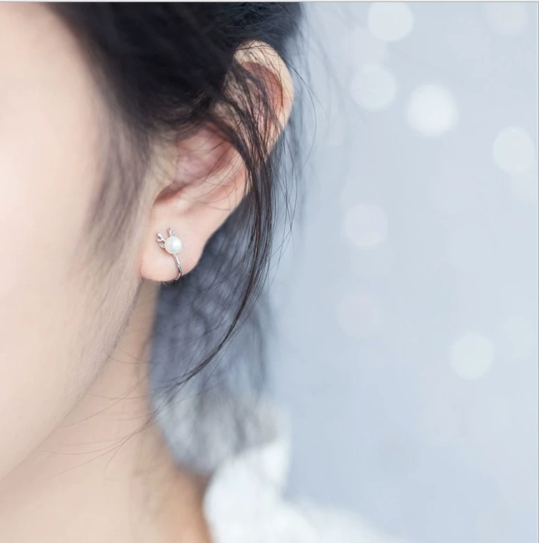 Literary and fresh 925 sterling silver ear clip with sparkling diamonds, simple and cute ear bone clip, Japanese and Korean exquisite non-pierced ear clip for women, hypoallergenic