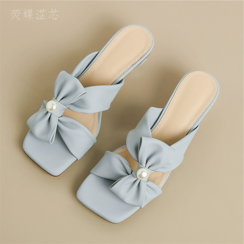 Slip-on crystal fairy mid-heeled soft leather sandals