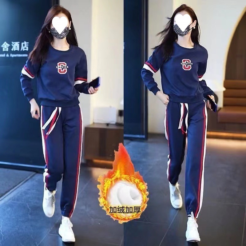 Casual fleece-lined suit for women 2024 Autumn New Fashion loose slimming sweater sweatpants sports two-piece suit