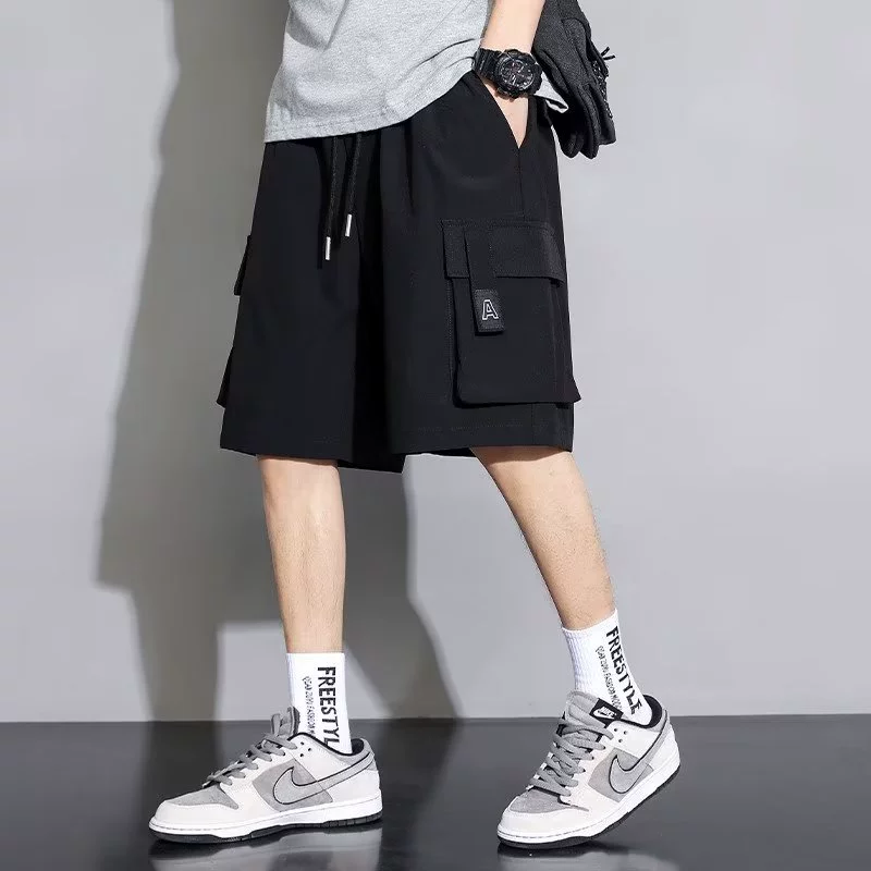 Working shorts men’s trendy ice silk casual pants summer thin 2024 trendy brand loose sports outside wear five-point pants