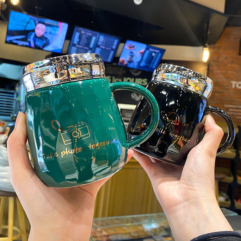 7VHV Ceramic Mug Couple’s Water Cup Office Mirror with Lid Retro Men’s and Women’s Business Gift Giving Cup