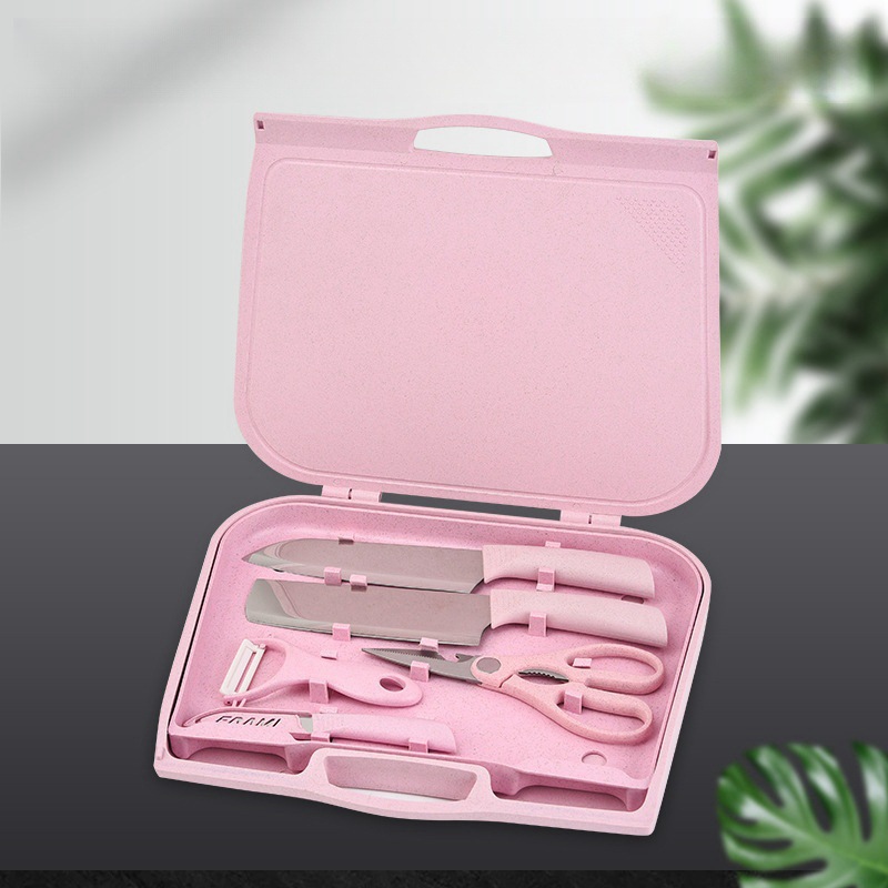Cross-border hot sale stainless steel straw six-piece set with cutting board household kitchen knife gift set suit wholesale