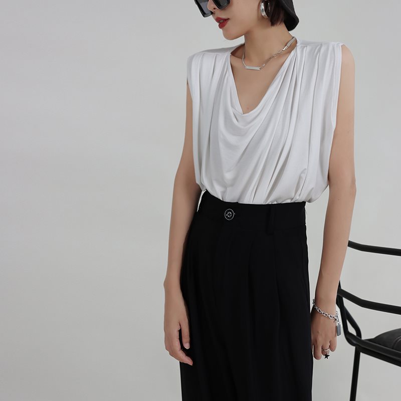 Women’s Camisole Stacked Wearing Inner 2024 Summer Design Pleated Necker Niche Outfit High-end Sleeveless Top Fashionable