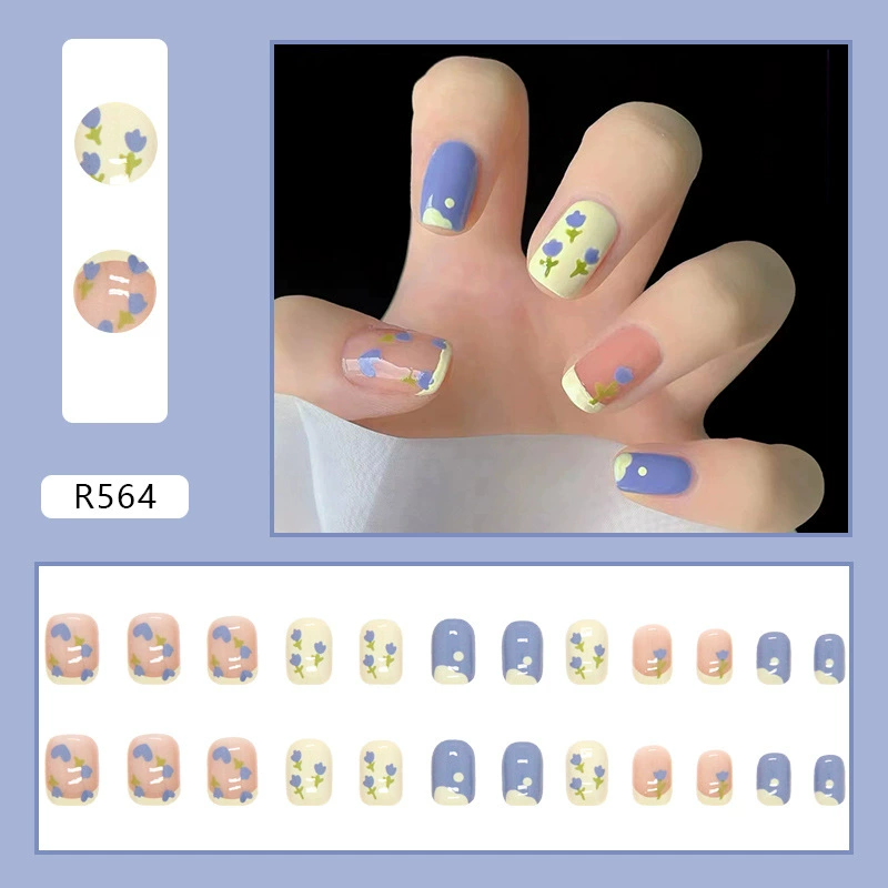 Pure iced iced color, wearing armor 24 pieces of fake nail finished products small incense wind nail film