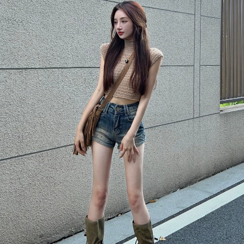 Women’s summer fashionable navel leaking pure cotton short-sleeved T-shirt