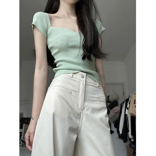 kumikumi right shoulder sweater stretch pullover short sleeves