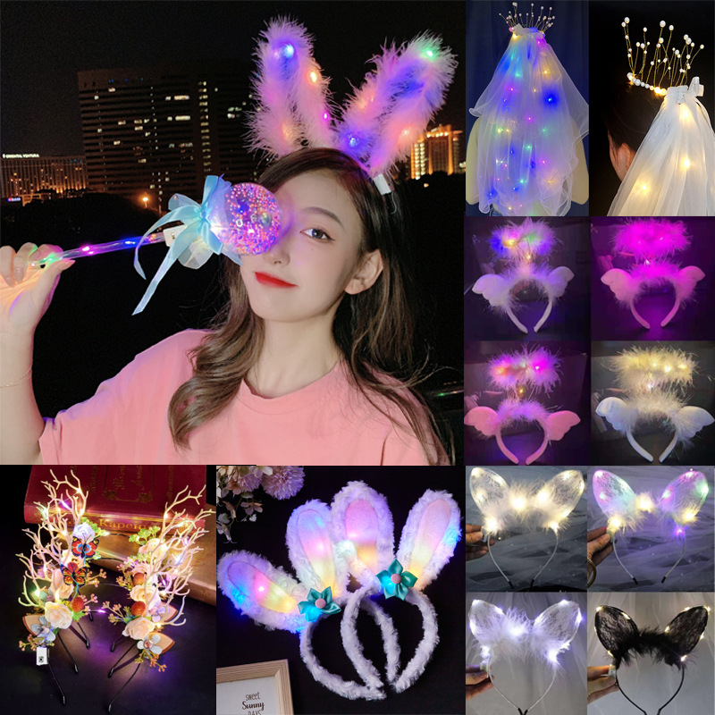 Stall Toy Night Market Luminous Headband with Light Headwear Push Sweep Code Bar Small Gift Cat Ear Rabbit Ear Headband