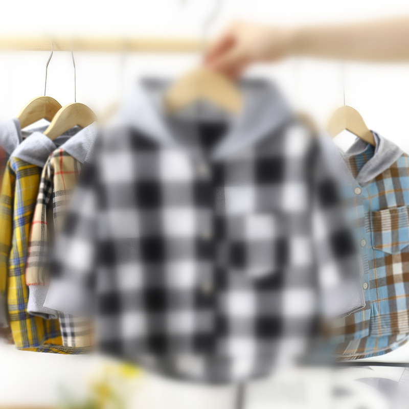 Children’s Spring and Autumn Shirt Children’s Clothing Boy’s Hooded Plaid Shirt Girl’s Baby’s Long Sleeve Plaid Base Jacket Top