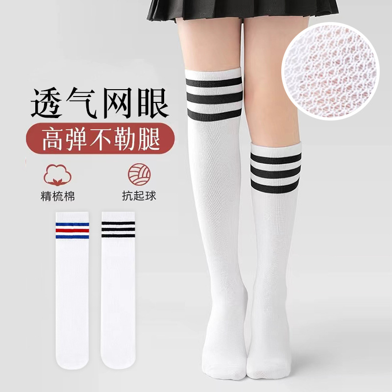 Children’s Socks White Football Socks Mesh Over-the-Knee Thin Medium Stockings Kindergarten Primary School Students Graduation Performance Socks