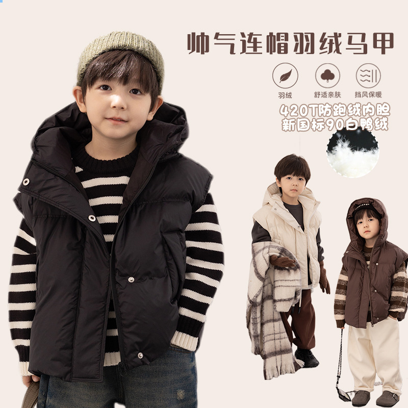 Children’s new national standard down jacket Aimo Beibei 2023 Winter boys and girls 90 white duck down hooded vest loose coat