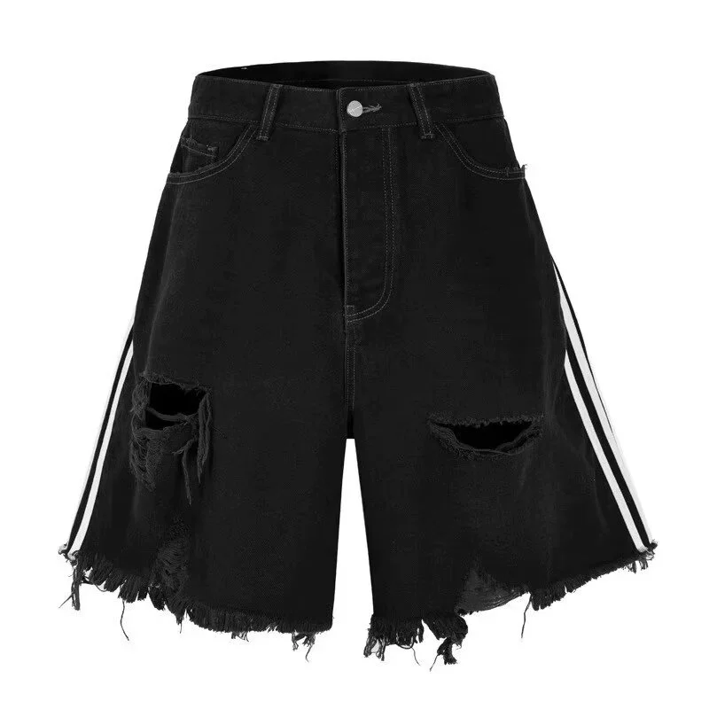 Distressed washed denim men’s and women’s American shorts
