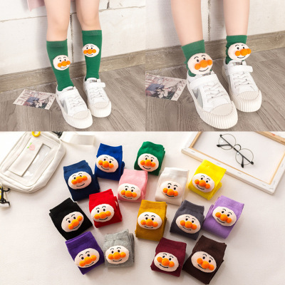 Children’s Socks Straight Heelless Children’s Socks Doll Head Front and Rear Wearable Candy-colored Socks for Boys and Girls Mid-length Socks