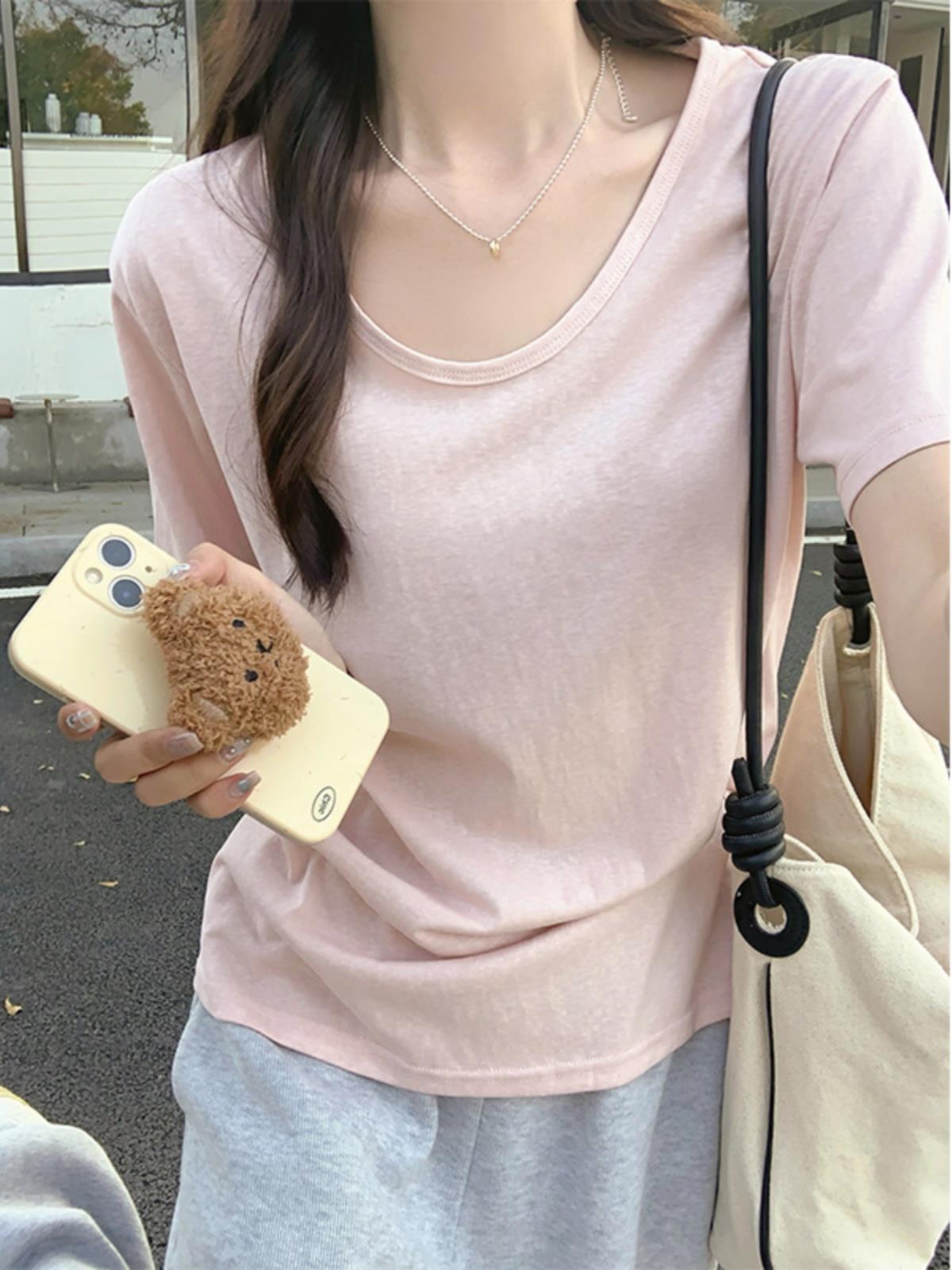 T French Style Gentle Style U-Neck Short-Sleeved T-Shirt Women’s 2024 Summer New Style Lazy Style Loose Base Shirt Inner Top