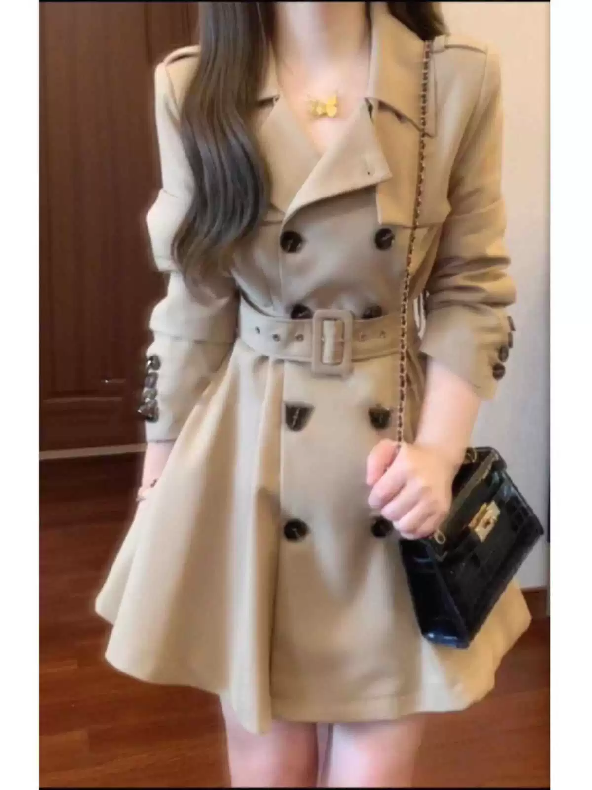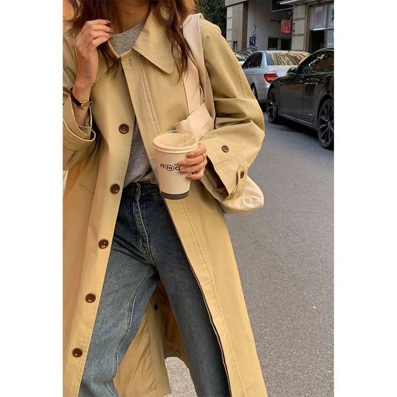 Trench coat for women autumn 2024 New Korean style loose mid-length small British style khaki overcoat