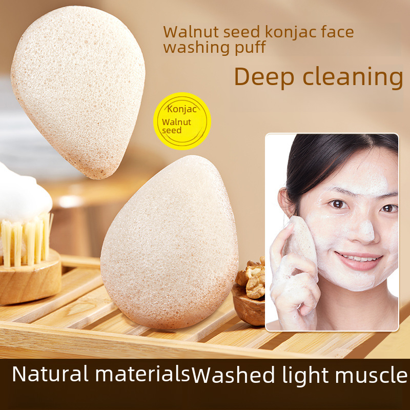 GECOMO walnut seed konjac face washing puff Gentle Exfoliating Deep Cleansing Facial Cleansing artifact natural facial cleansing puff
