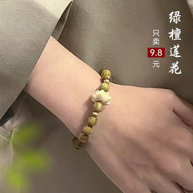 Green sandalwood bracelet student text play beads sandalwood plate play bracelet men’s retro lotus bracelet women’s peripheral accessories