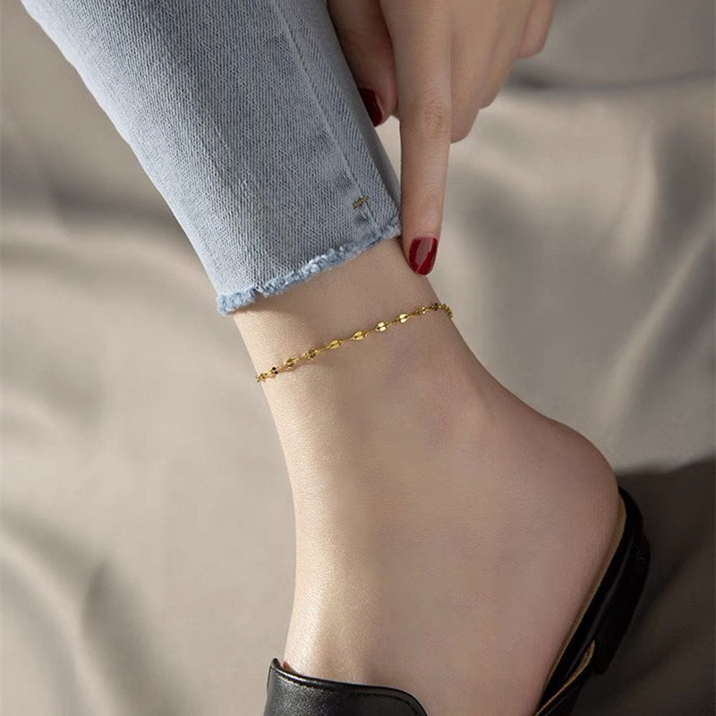 New fashionable 18K gold lip chain titanium steel anklet fairy ins simple non-fading high-grade temperament online celebrity foot accessories