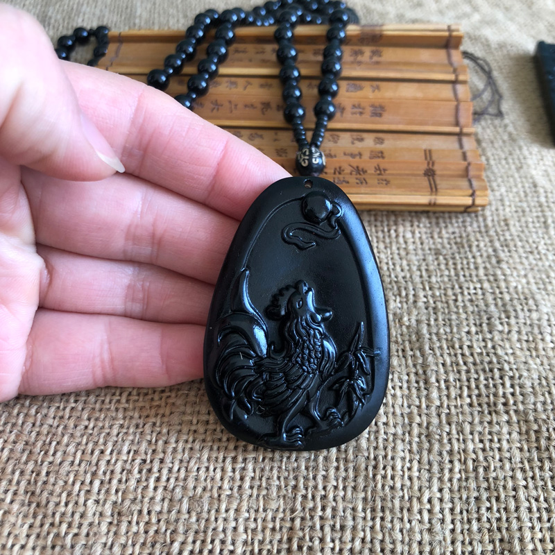 Good luck and fortune, jade pendant necklace, natural obsidian zodiac sign, big rooster pendant, golden rooster dawn pendant, free certificate