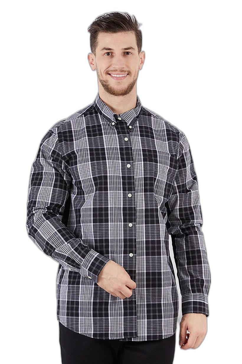 Black Combo Plaid Casual Shirt with Long Sleeves for Men, Easy Fit.