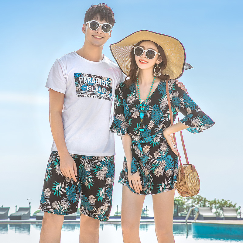 Beach couple wear 2023 new fashion split floral two-piece suit seaside suit Sanya Thailand honeymoon vacation wear