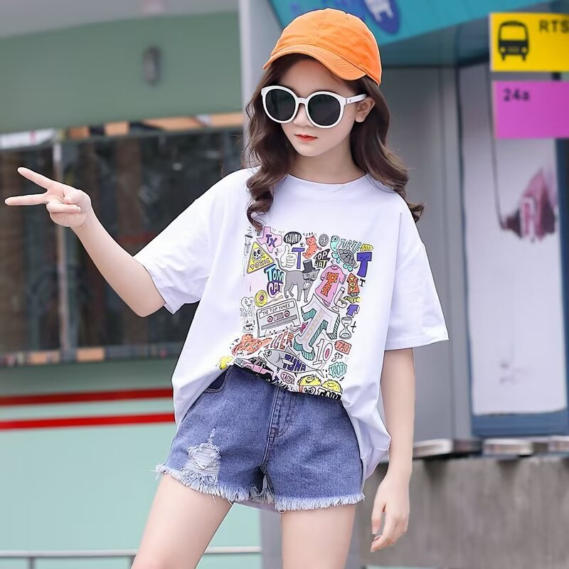 Girls T-shirt summer short sleeve children’s top fashion 2024 new Korean summer foreign style children’s clothing wholesale