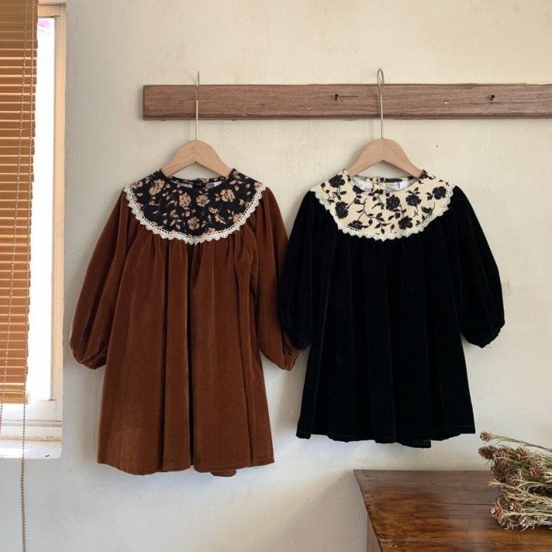 Fried Street Children’s Wear Autumn Dress Girl’s Long Sleeve Velvet Dress Baby Girl’s Fashion Court Style Princess Dress