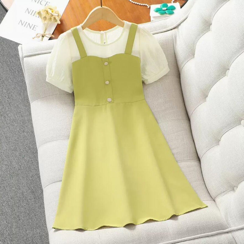 Girls’ Summer Dress dress 2024 New Children’s Western Style Summer Strand Dress Girls’ Summer Fake Two-Piece Dress