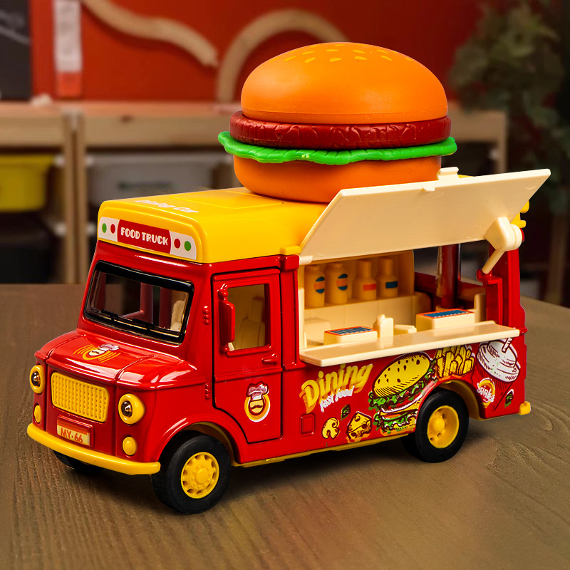 Children’s Ice Cream Toy Car Girls Hamburger Ice Cream Dining Car Alloy Kitchen Inertia Car Bus Play Home