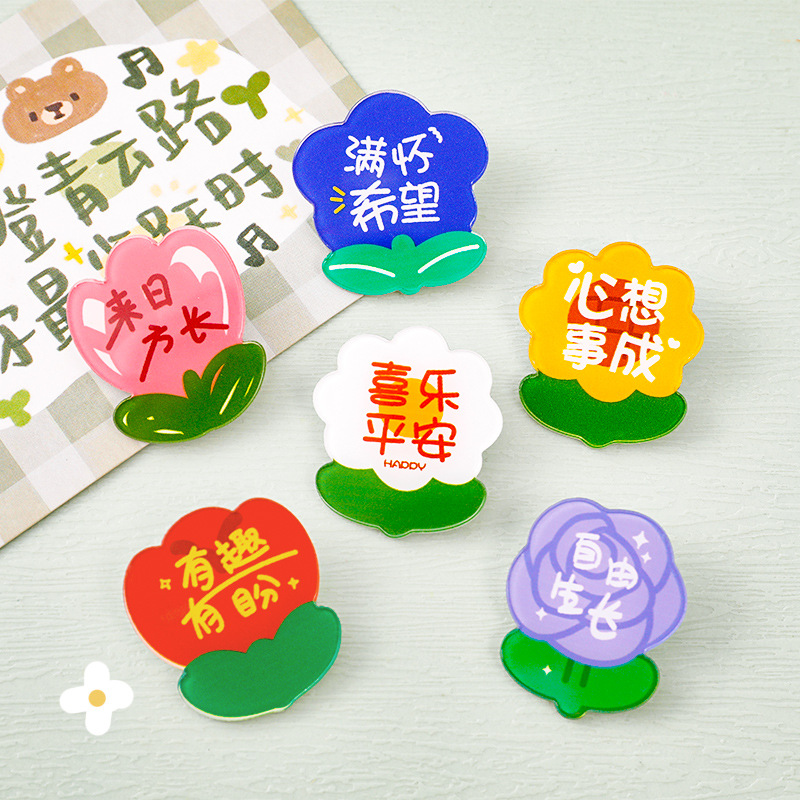 Cartoon special-shaped flower brooch children’s inspirational text accessories pin primary school student prize gift acrylic badge