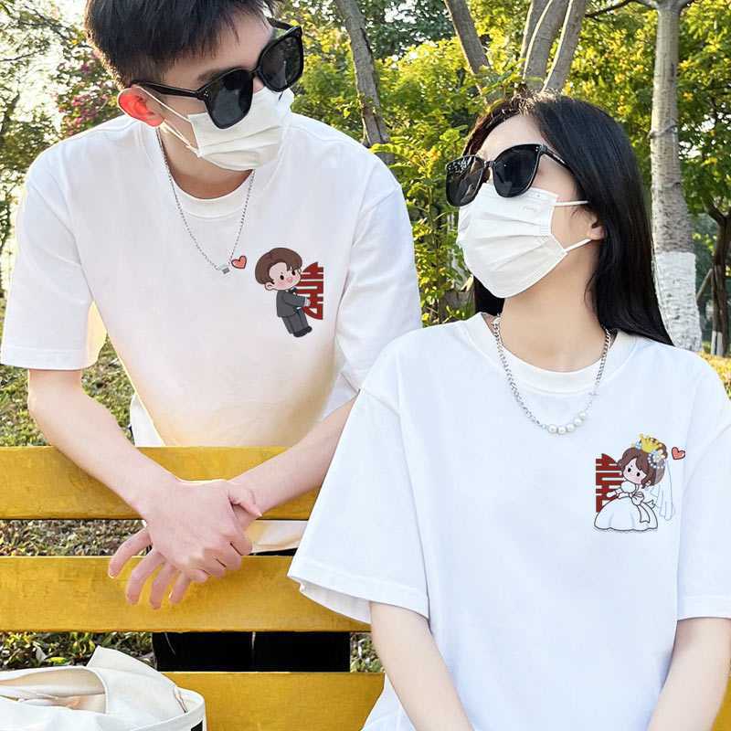 Tight Pure Cotton Engagement Wedding Photo License Registration Couple’s Dress Special Different Short Sleeve