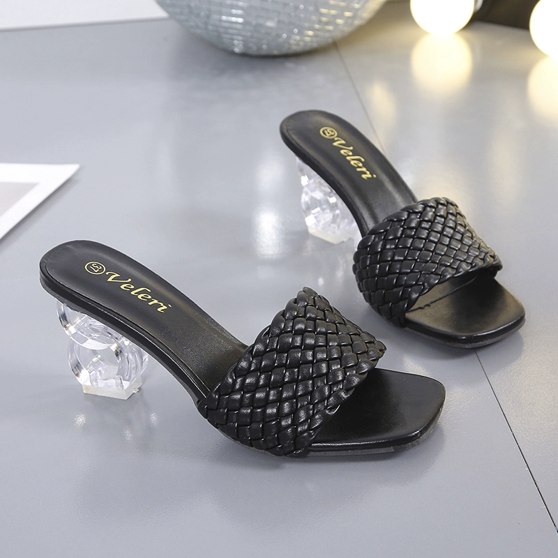Fairy knitted Roman large size mid-heel open-toed sandals