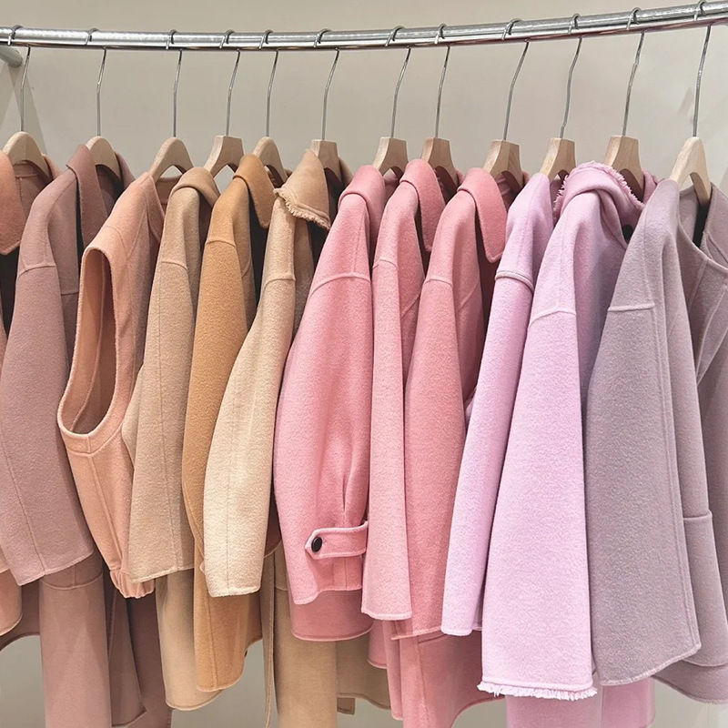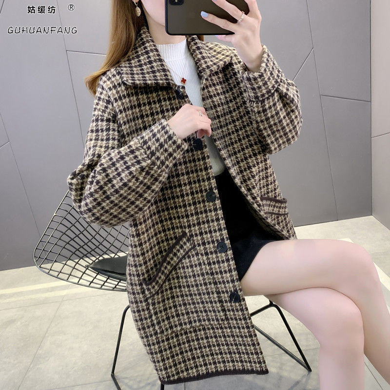 Thick woolen plaid coat for women autumn and winter New loose knitted double-sided nylon coat for women outer wear