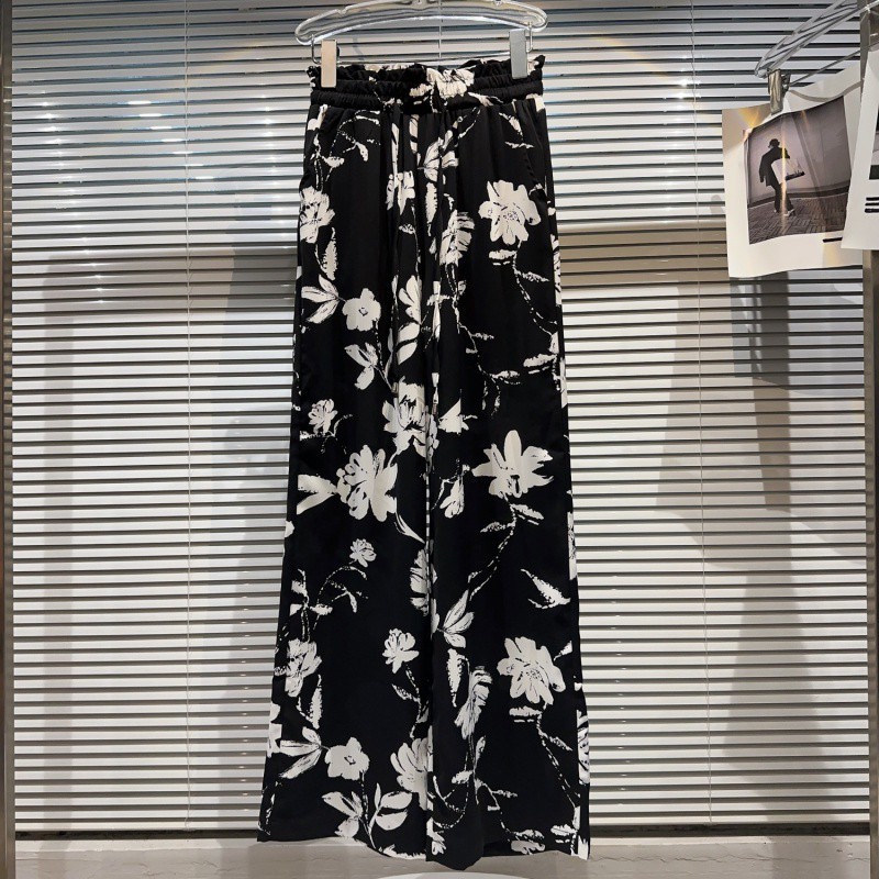 Fat extra large size 300kg wearable home pants summer and autumn ink painting flower pattern elastic waist pants women