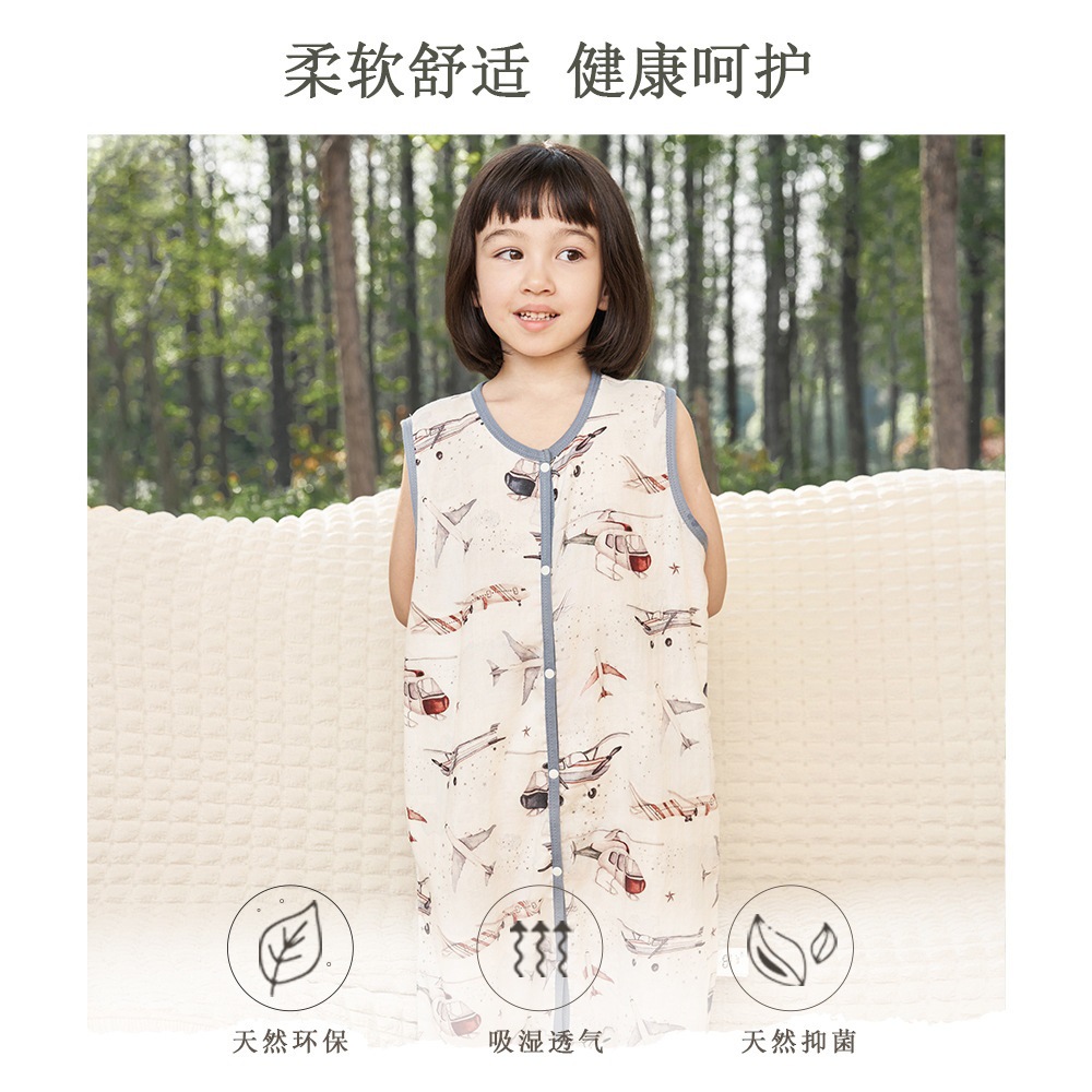 Children’s sleeping bag summer bamboo cotton gauze air-conditioned room sleeveless vest light leg sleeping bag sleeping bag.