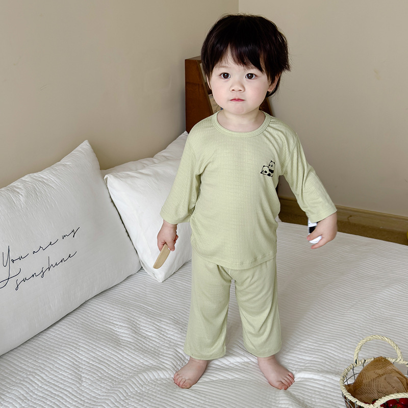 Boys and Girls Air Conditioning Children’s Home Clothes suit Baby Pajamas Ice Silk Summer Thin Seven-point Casual suit