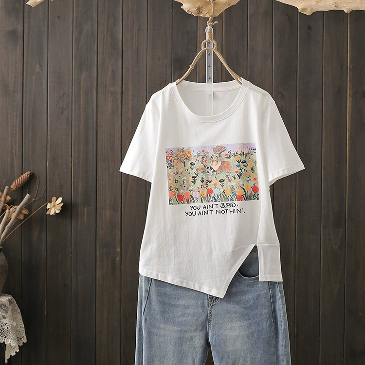 200 pounds of age reduction, irregular split niche short -sleeved T -shirt