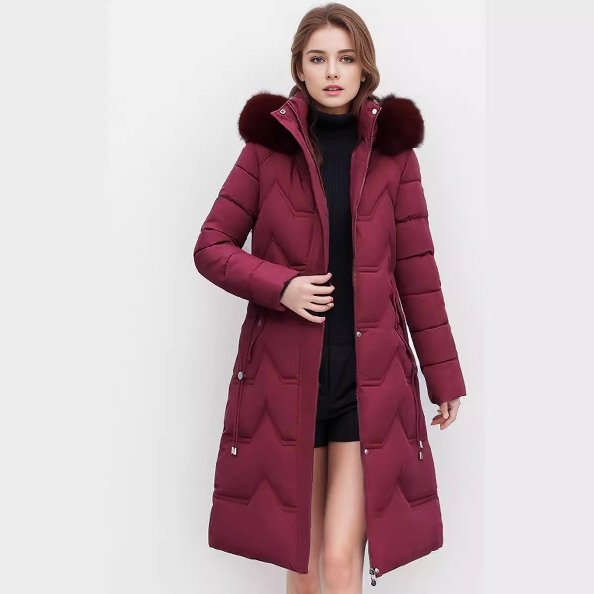 2024 winter new hooded middle-aged and elderly mother’s warm cotton-padded jacket with fur collar women’s long over-the-knee coat