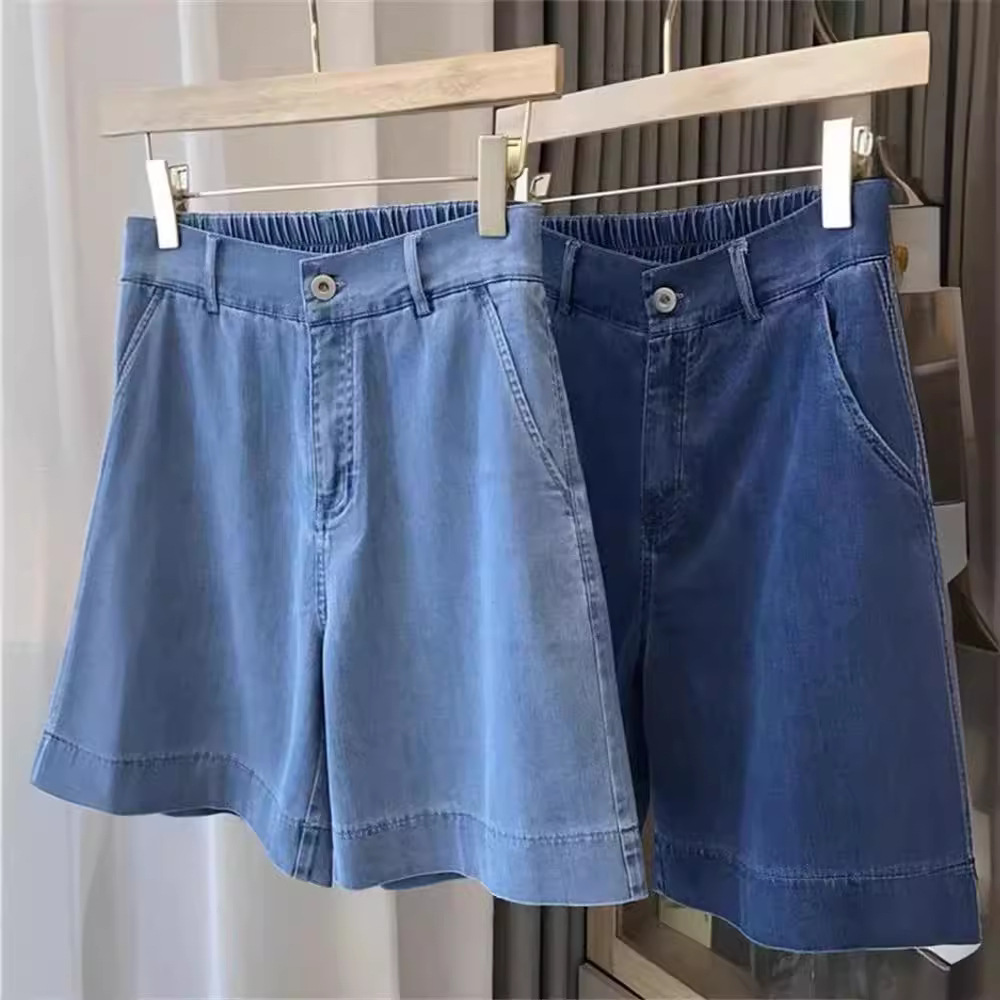 Ice Silk Shorts Women’s 2024 New Summer Thin High Waist Loose Wide Leg Casual Tencel Denim Half Pants